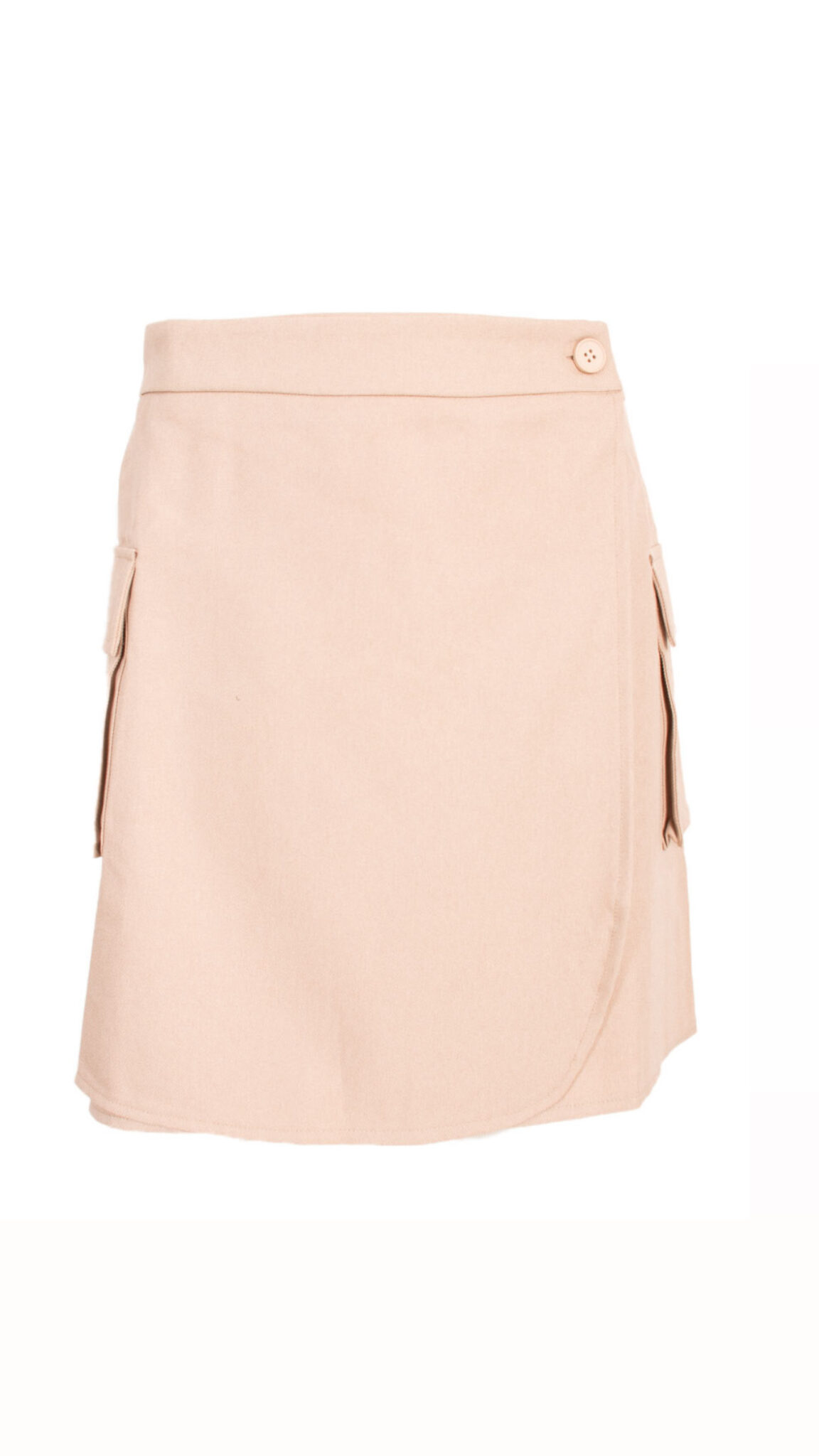 De wikkel sluiting geeft een vrouwelijke touch, terwijl de cargo-zakken zorgen voor een moderne, nonchalante vibe.